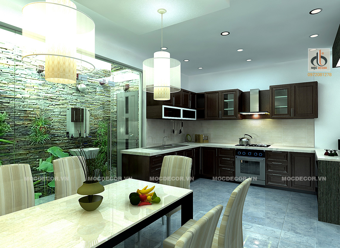 Thiết kế nội thất phòng khách, bếp kết hợp phòng ăn nhà phố, Quy Mô : 280 m2 sàn