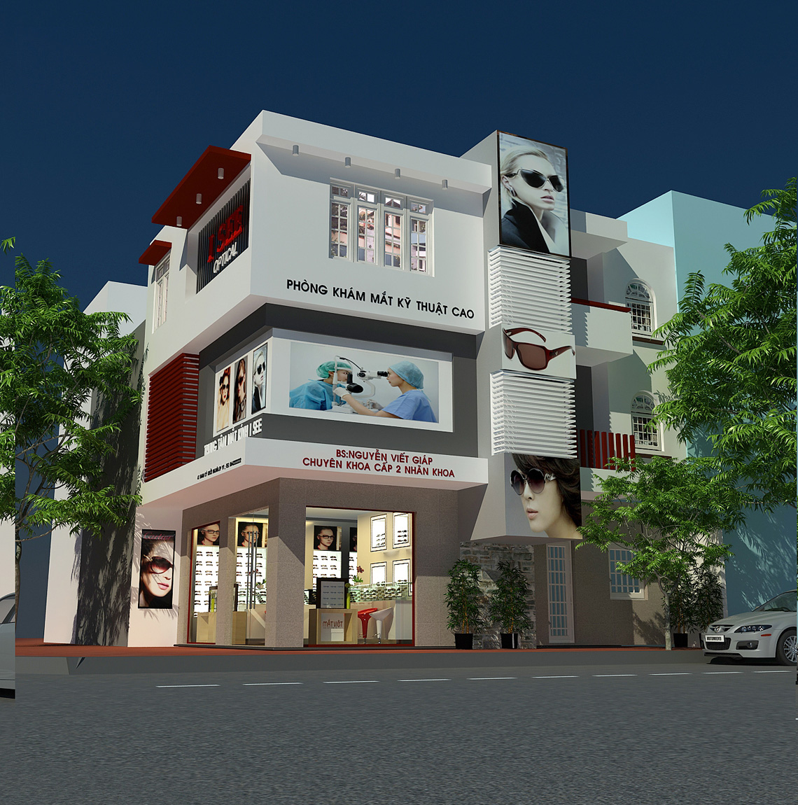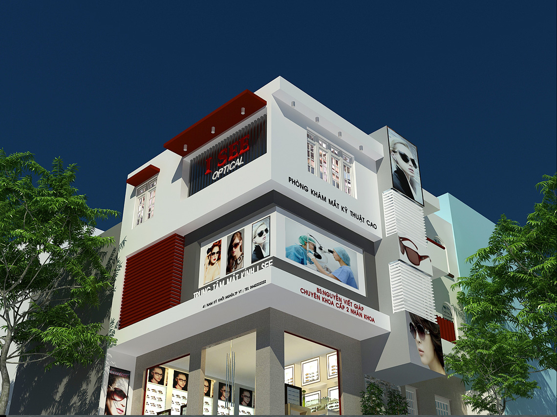 Thiết kế trung tâm trưng bày mắt kính ISEE, Phòng khám và điều trị mắt kỹ thuật cao ISEE. Địa Điểm : Nam Kỳ Khởi Nghĩa, Thành Phố Vũng Tàu, Quy Mô : 300m2 sàn